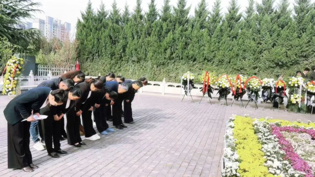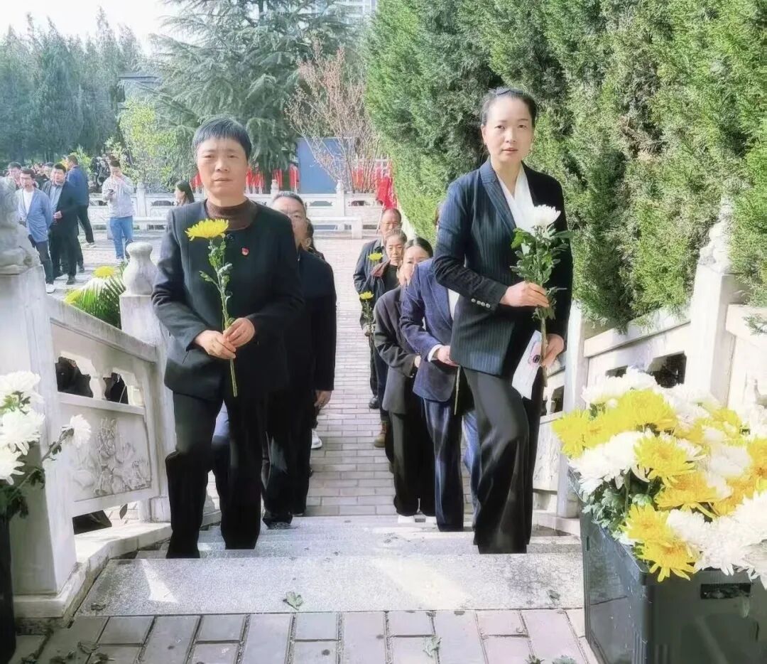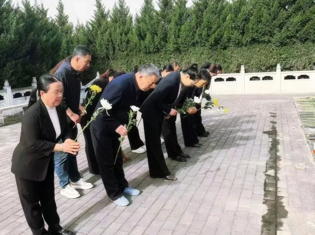 当日早晨,天空澄澈,微风轻拂,全体人员身着整齐素装,怀着崇敬与沉痛的心情抵达烈士陵园。一踏入陵园,庄重的氛围便扑面而来,葱郁的松柏环绕,仿佛在默默守护着长眠于此的英烈。大家在庄严肃穆的烈士纪念碑前列队肃立,现场气氛凝重而安静,每个人的脸上都写满了对烈士们的深切缅怀。祭扫活动在默哀中拉开帷幕,全体人员低头默哀三分钟,寄托对烈士们的无尽哀思。在这寂静的三分钟里,仿佛能听到历史的回响,先烈们英勇奋战、舍生忘死的画面在众人眼前浮现。